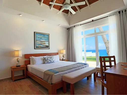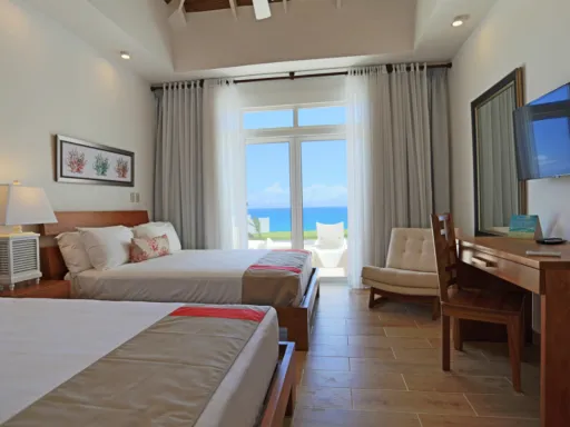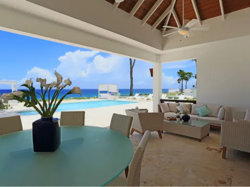 En esta lujosa villa frente al mar Usted podrá escapar de la realidad y sumerjirse en el relajante ambiente vacacional que reina en Ocean Village Deluxe. Las tres habitaciones ofrecen una vista encantadora a las aguas turquesas del Océano Atlántico. La villa cuenta con su propio exuberante jardín tropical, una piscina privada al aire libre y una amplia terraza techada donde Usted podrá esconderse de la rutina diaria, inspirarse por el esplendor de las palmas eternamente verdes y olvidarse de todos los problemas. Goce de felicidad completa en un ambiente moderno y sofisticado que además se destaca por el impecable servicio que le ofrecemos.