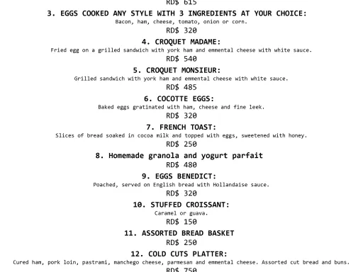 New breakfast menu at the Restaurant Maria.