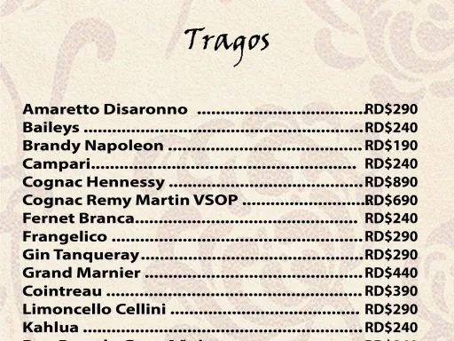 New menu of the Maria bar