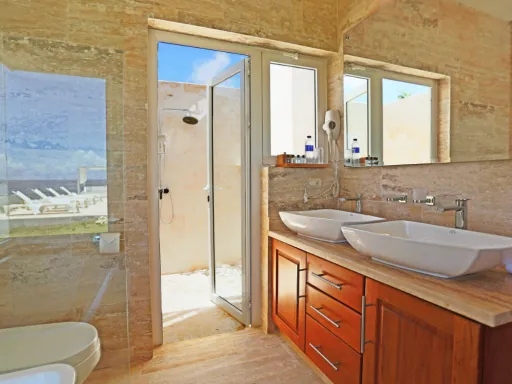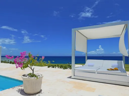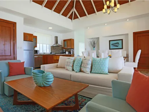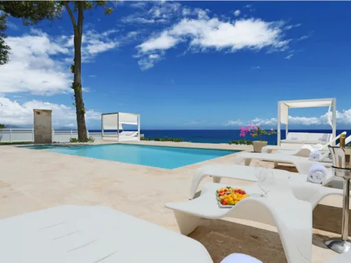 En esta lujosa villa frente al mar Usted podrá escapar de la realidad y sumerjirse en el relajante ambiente vacacional que reina en Ocean Village Deluxe. Las tres habitaciones ofrecen una vista encantadora a las aguas turquesas del Océano Atlántico. La villa cuenta con su propio exuberante jardín tropical, una piscina privada al aire libre y una amplia terraza techada donde Usted podrá esconderse de la rutina diaria, inspirarse por el esplendor de las palmas eternamente verdes y olvidarse de todos los problemas. Goce de felicidad completa en un ambiente moderno y sofisticado que además se destaca por el impecable servicio que le ofrecemos.