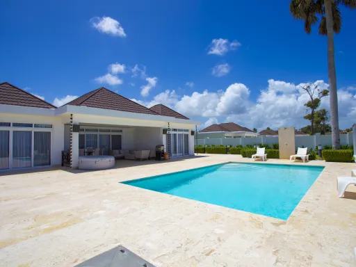 Villas de 2 o 3 dormitorios en segunda línea con piscina privada y jardín tropical.