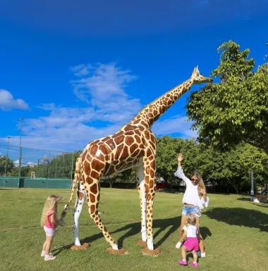 Bienvenidos a nuestro nuevo Parque Safari, donde sus niños se divertirán mucho jugando, escalando y tomando fotos con diferentes esculturas de animales - elefantes, girafas, hipopótamos, pájaros y muchos más. También tenemos una cascada y una piscina pequeña! El árbol alto de baobab tiene un tobogán lo que hace su visita aún más interesante. Parque Safari es el mejor lugar para su sesión de fotos en familia! Puede ver más fotos aquí!