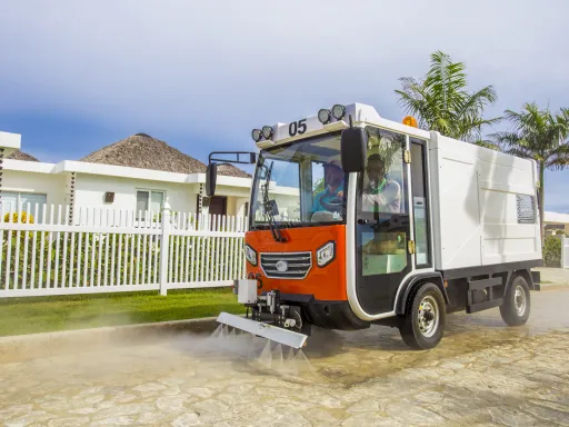 Y ahora tenemos los modernos vehículos eléctricos que mantienen todo el territorio del proyecto limpio y hermoso!